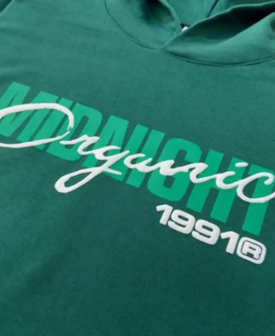 Unisex Midnight Organic 1991 Puff Print Green Hoodie